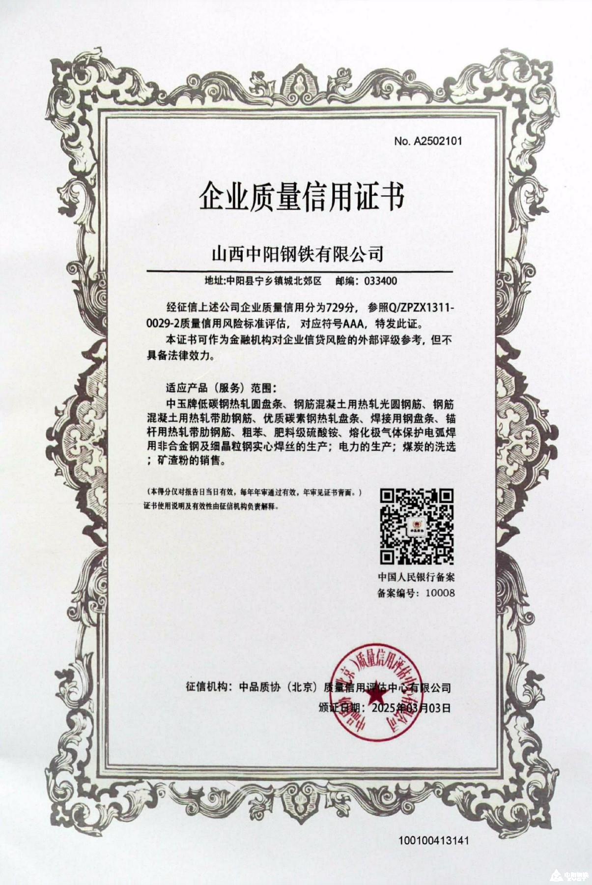 企業(yè)AAA質(zhì)量信用證書(shū)